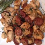 Β) Παράλληλα σε κατσαρόλα βάζουμε νερό να βράσει, ρίχνουμε αλάτι, το κριθαράκι και βράζουμε το μισό χρόνο από το αναγραφόμενο της συσκευασίας περίπου 7-8 λεπτά.  Με την τρυπητή κουτάλα το αφαιρούμε και το τοποθετούμε σε ένα ταψάκι.  Προσθέτουμε το βούτυρο και ανακατεύουμε.