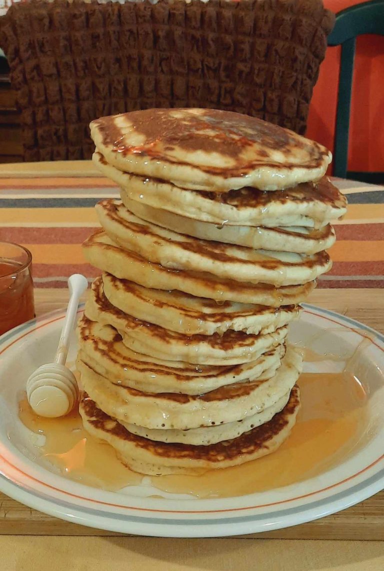 Η μαμά μου μας έκανε τηγανίτες με αλευράκι και νεράκι, έφτιαχνε απλά πράγματα, χωρίς στολίδια» έλεγε, εγώ θα το προχωρήσω λίγο και θα φτιάξω πανκέικ, τηγανίτες δηλαδή με αυγά και βούτυρο… Η μαγειρική εξελίσσεται…