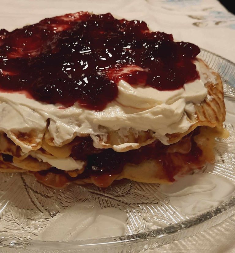 Τούρτα με κρέπες, τυρί και μαρμελάδα βύσσινο